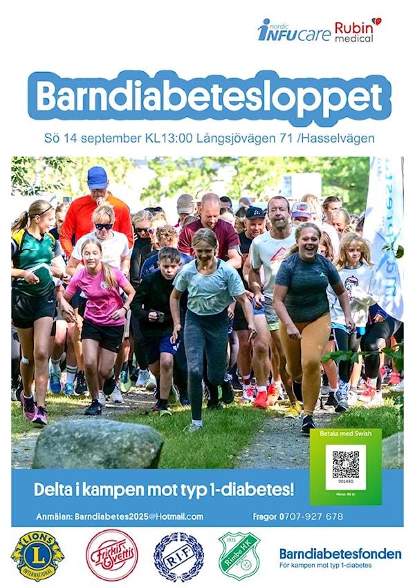 Den 14 september kl. 13.00 arrangeras Barndiabetesloppet av Lions med start vid Långsjövägen 71/Hasselvägen.