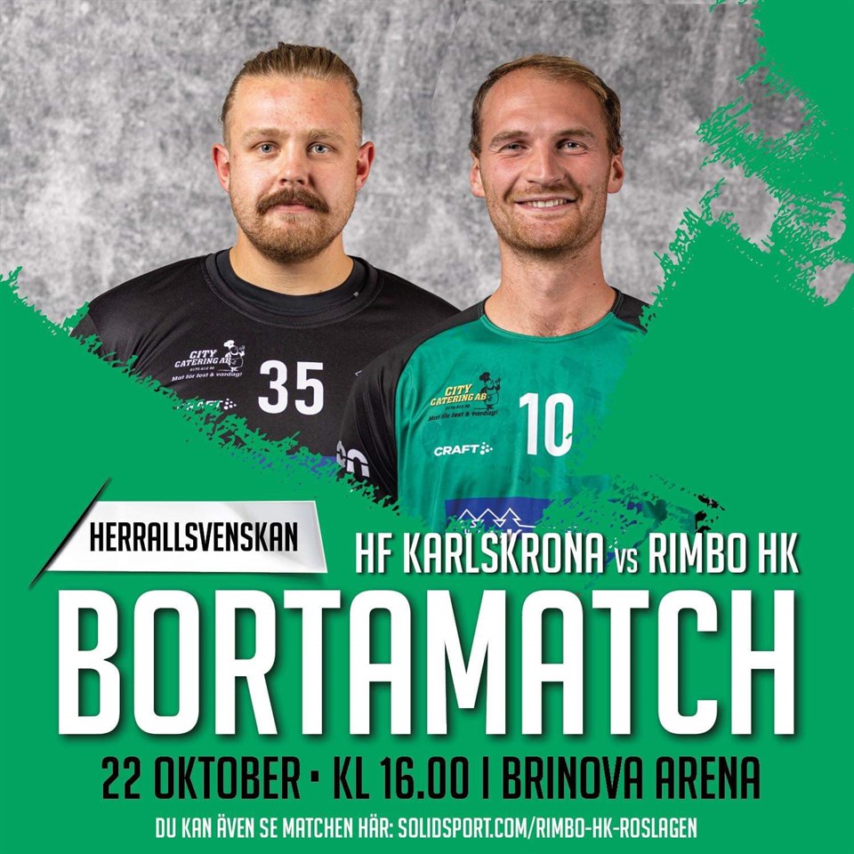 Rimbos krigare är på väg ner till Karlskrona för match mot HF Karlskrona. Matchen startar 16:00 och du följer den via Solid Sport. Eftet vinsten mot IFK Ystad senast åker vi med självförtroende till matchen mot serieledarna HF Karlskrona. Hemmalaget har fem segrar på fem matcher. Men vi ska ge dem en match! Vi får se upp med niometersskytte samt duktiga kanter! Vi fick höra vad Adam Berg har för tankar inför matchen! "Det har varit en bra träningsvecka så förhoppningsvis tar vi med oss känslan från förra helgen och plockar vår första bortaseger."